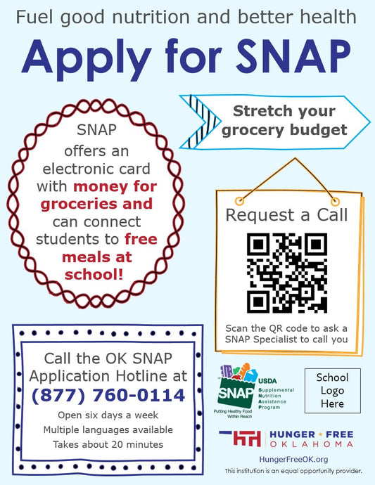 Materials specifically for connecting school students, caregivers, and communities with food resources. Learn more about SNAP in Schools with our on-demand webinar!